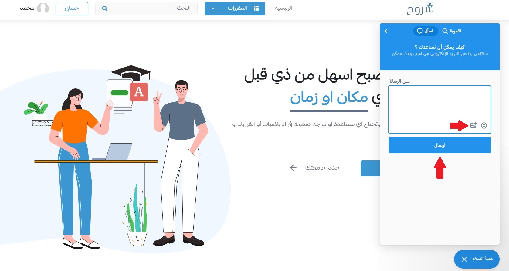 قم بكتابة طلبك , بإمكانك ايضا ارفاق الصور من خلال الأيقونة المخصصة كما هو موضح
